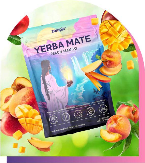 Each serving contains 100mg of natural caffeine from Yerba Mate, providing a steady energy boost without the jitters or crashes of coffee.