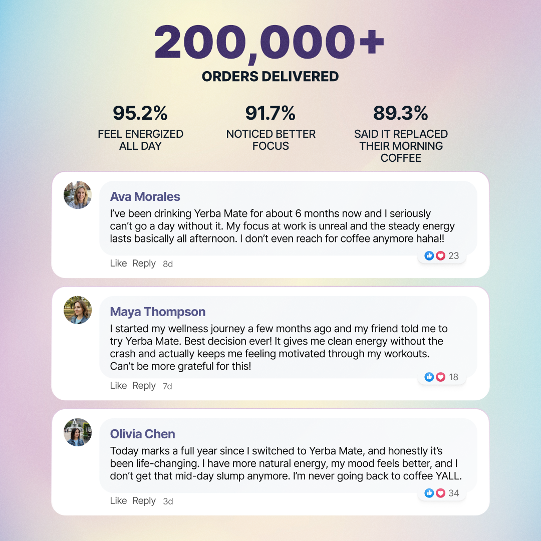 We stand by our product with a 90-day risk-free trial. If Yerba Mate isn’t for you, just contact us for a hassle-free refund—no questions asked.